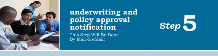 Underwriting and Policy Approval Notification (This Process Is Done By Mail) - The application process is generally referred to as underwriting. For the most part, these two terms are used interchangeably. In its broadest sense, underwriting involves the collection and analysis of applicant information and ultimately results in an underwriting decision and offer made by the insurance company. PrimeQuote is unique in the Internet brokerage world in that we stay actively involved throughout the underwriting process. Our Case Management and Customer Service teams work with you and the insurance company to obtain outstanding requirements, facilitate exams, clarify answers, answer questions and much more. We keep you posted on the progress of your application and any important developments. Once an underwriting decision is made, we will contact you with the terms of the offer and work with you to place your policy in force.